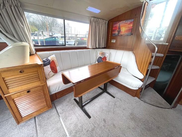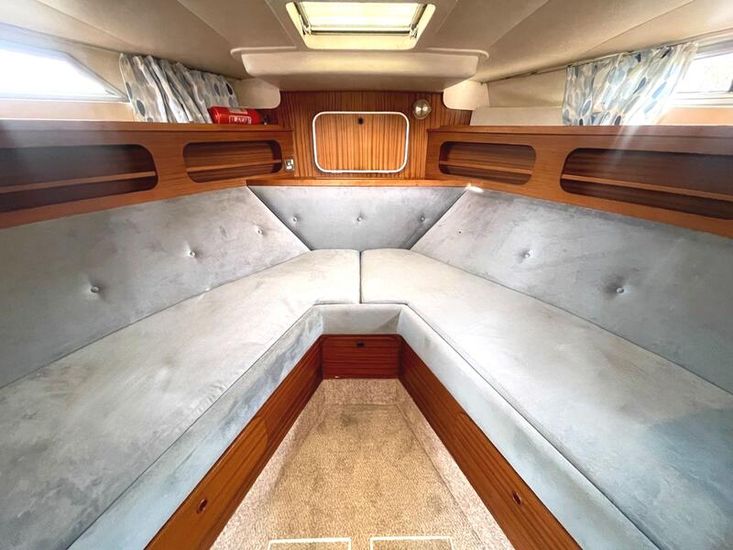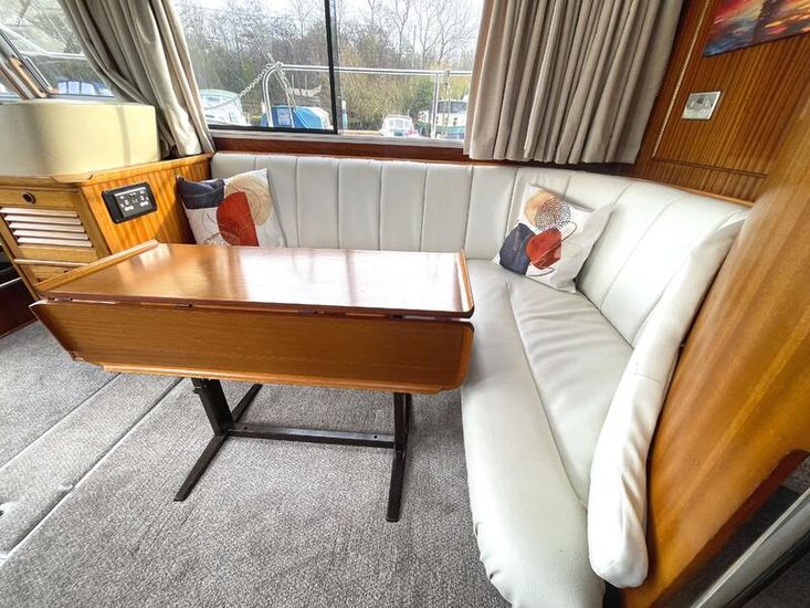 The Broom 37 Crown offers exceptionally spacious and comfortable living areas, now further enhanced by a series of high-end modern upgrades. The forward cabin features a cozy V-berth configuration, while the midships saloon provides a bright, airy environment with a large dinette perfect for dining or relaxing in style.