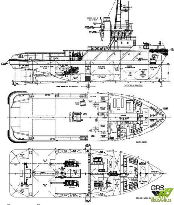 Engines : 2 x Caterpillar / Caterpillar Inc 3512B, 2,028 kw, 1,600 rpm, Propellers 1 Fixed Pitch (Port Side) + 1 Fixed Pitch (Starboard)