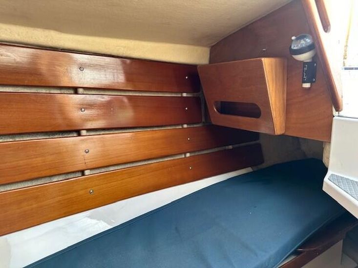 This Shrimper 19 comes with a 2018 Yamaha F6CMHL 6hp long shaft outboard (which the owner has informed us has less than 20 hours on it.) With 2 berths in the cabin below, it makes a good overnighter.