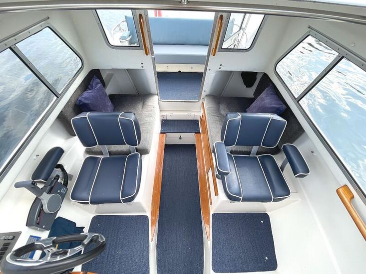 The 2006 Yamarin 59 Cabin is a versatile and practical all-weather day boat from the renowned Finnish manufacturer, built with comfort and usability in mind. Powered by a Yamaha 4-stroke 50hp petrol outboard engine, she delivers reliable performance for leisurely cruising or day trips. At just 19 feet, she makes excellent use of space, featuring full walkaround access for safe and easy movement around the deck. The well-designed enclosed cabin provides protection from the elements, ensuring you can enjoy your time on the water whatever the weather.